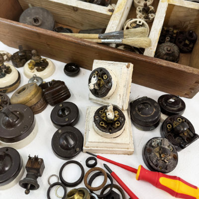With a background in production, events, buying and dressing, we established Period Electricals in 2021. With a mission to find, make and hire the widest and most interesting collection of electrical fittings from the UK and around the world. Our collection really got going during lock down, and since then has grown exponentially. As has our knowledge base.